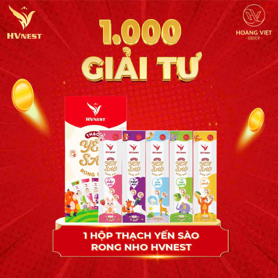 - 1.000 Giải Tư: 1 hộp thạch yến sào rong nho HVnest.