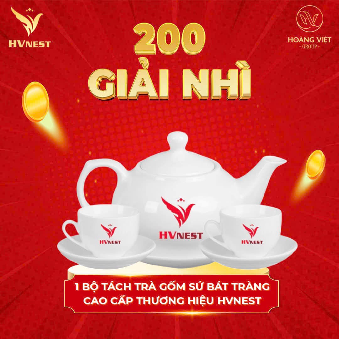 - 200 Giải Nhì: Bộ tách trà gốm sứ Bát Tràng cao cấp HVnest.