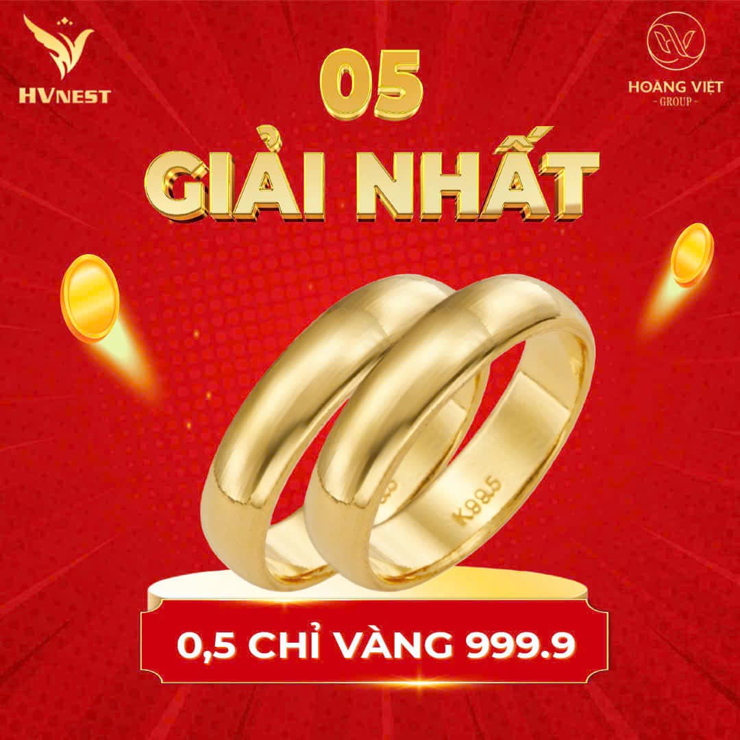 - 05 Giải Nhất: 0,5 chỉ vàng 99,99.