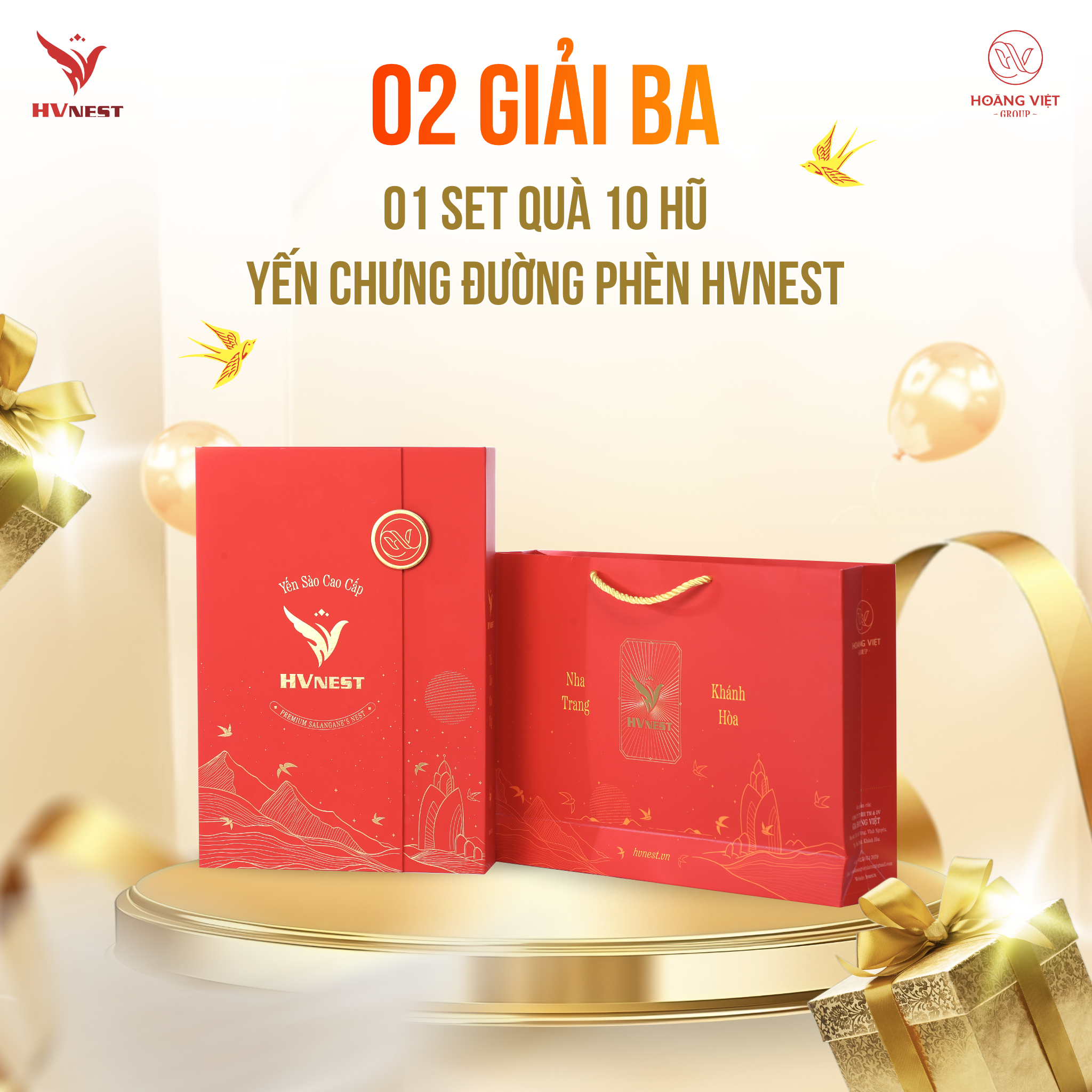 - Giải Ba: 2 giải mỗi giải gồm 1 set quà 10 hủ yến chưng đường phèn HVnest