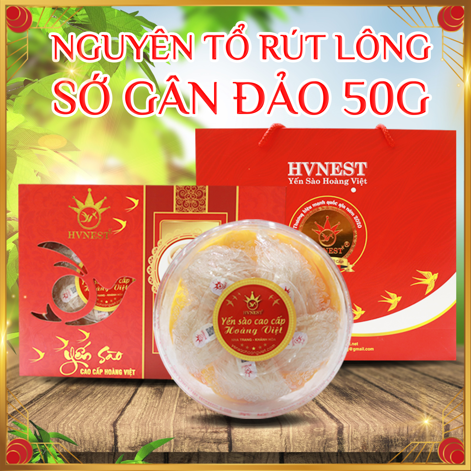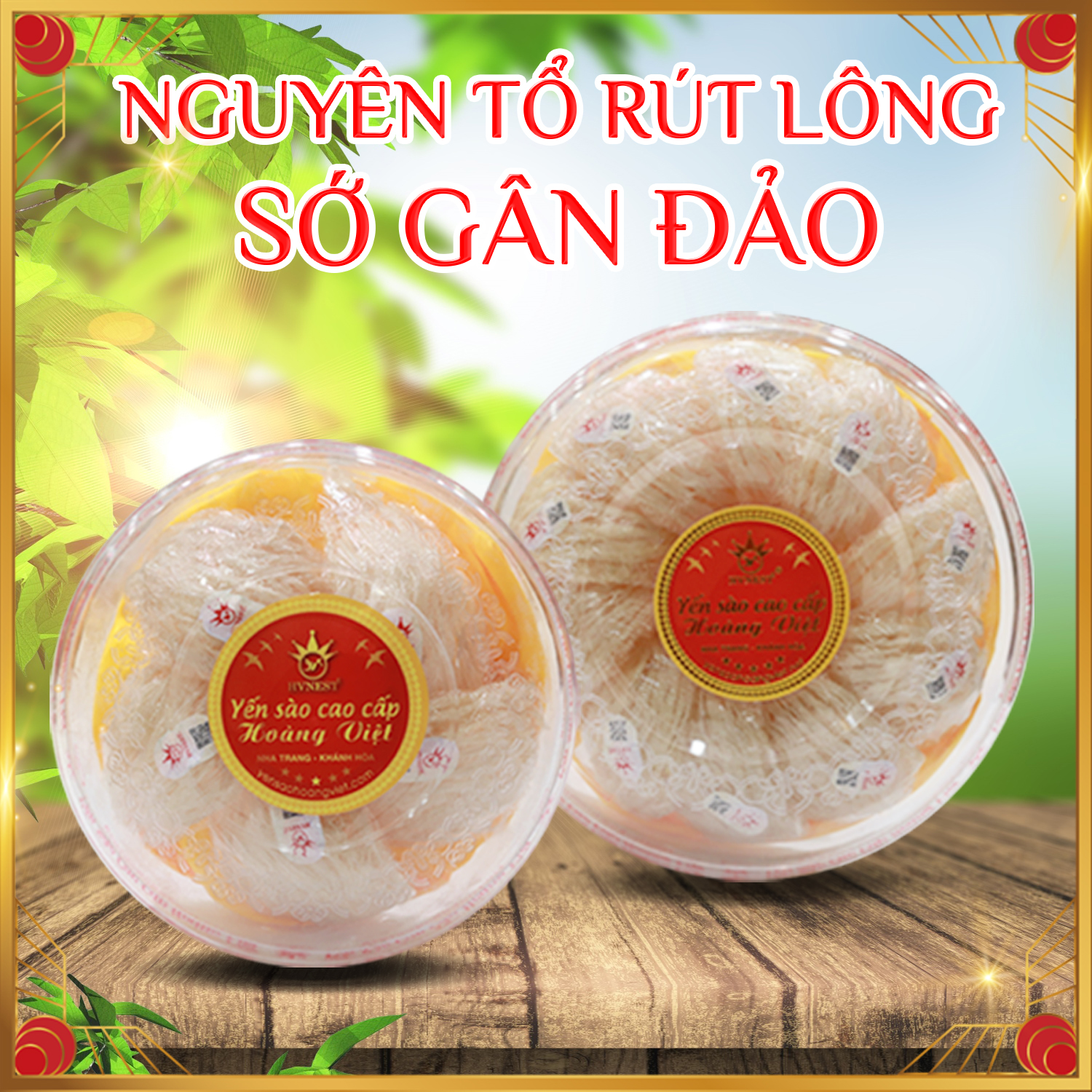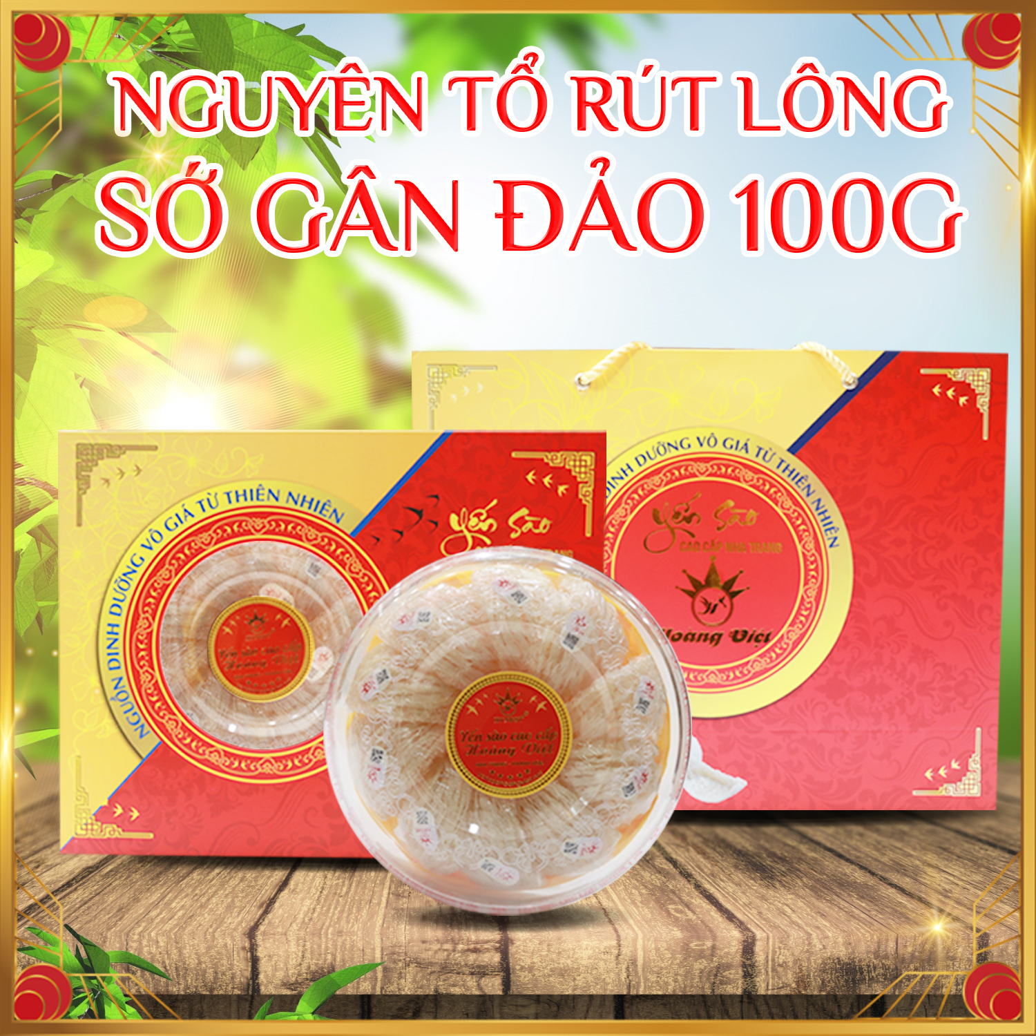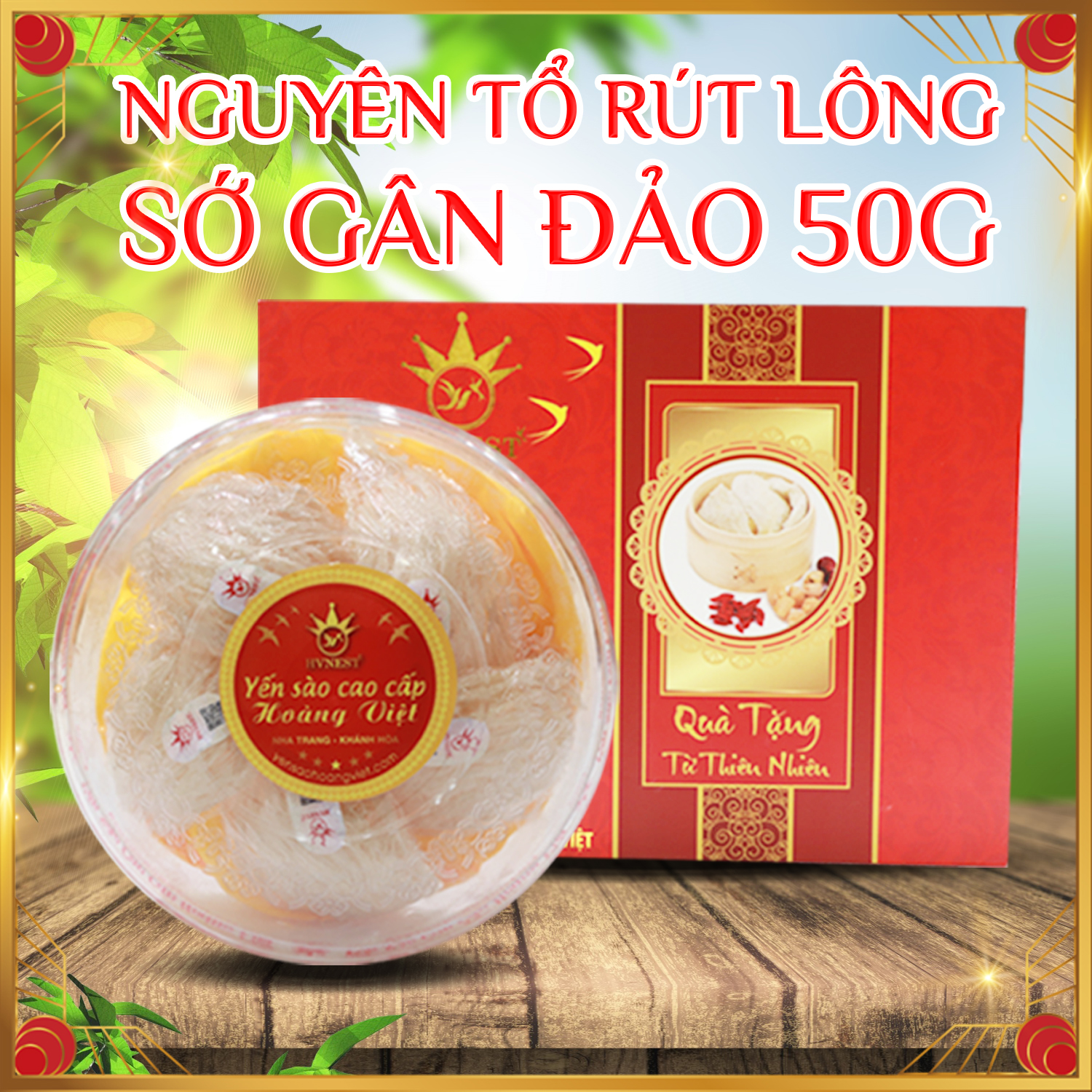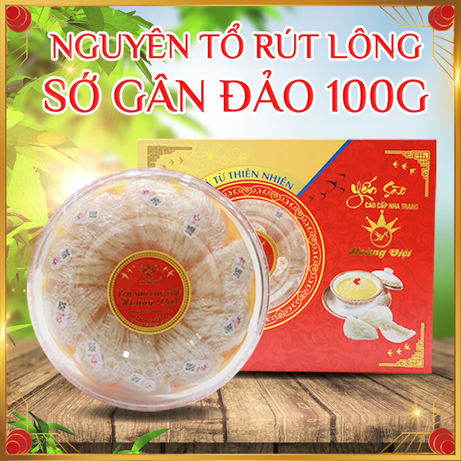 Yến nguyên tổ rút lông sớ gân đảo Hoàng Việtbao gồm tổ yến nguyên tổ gân đảo, nguyên chất 100%.