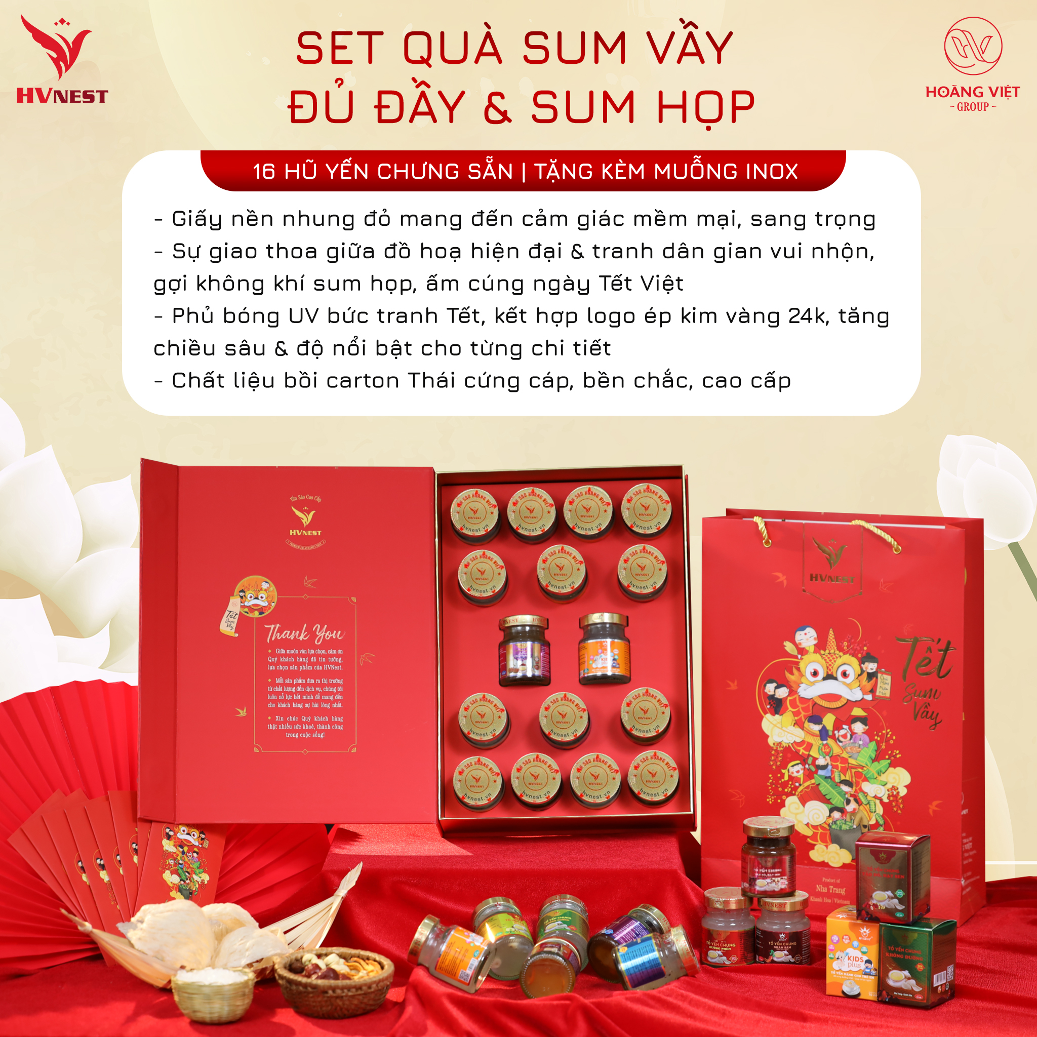 - 16 hũ yến chưng sẵn, tặng kèm muỗng inox.